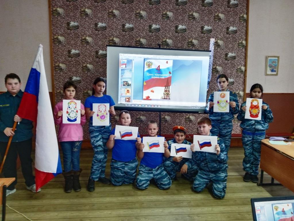 4 ноября наша страна отмечает День народного единства. В современной России его начали праздновать сравнительно недавно – в 2005 году, тогда центром торжества стал Нижний Новгород. В Линевском филиале МБУДО «Жирновский ЦДТ» прошли мероприятия, посвященные этому дню. У учащихся детских объединений «Аппликация из бумаги» (педагог Краснюк Т.И.) и «Спортивный туризм» (педагог Удодова Н.А) прошло занятие «Что такое день народного единства». Детям было рассказано об истории праздника и истории России, о воинской славе и доблести, о гордости за нашу Родину и ее героев, о милосердии и доброте. Просмотрели презентацию и после нее прошла тематическая викторина. В заключение занятия дети изготовили аппликацию с символикой России и исполнили гимн России.
